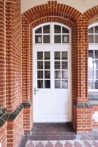 Our EI (T) 30 entrance door in the Beelitz sanatoriums blends harmoniously into the historical architecture of the venerable monument. We manufactured this fire-resistant external door according to our customer's specifications and in strict compliance with monument protection regulations - including a fanlight and a transom design profiled according to the historical model.